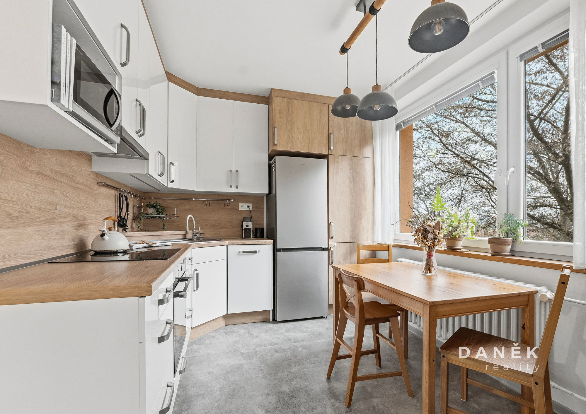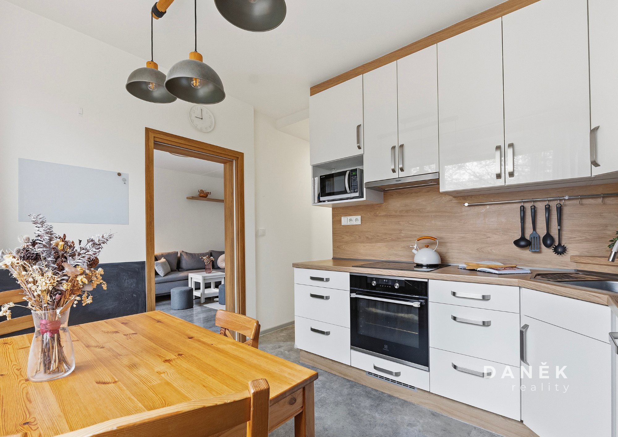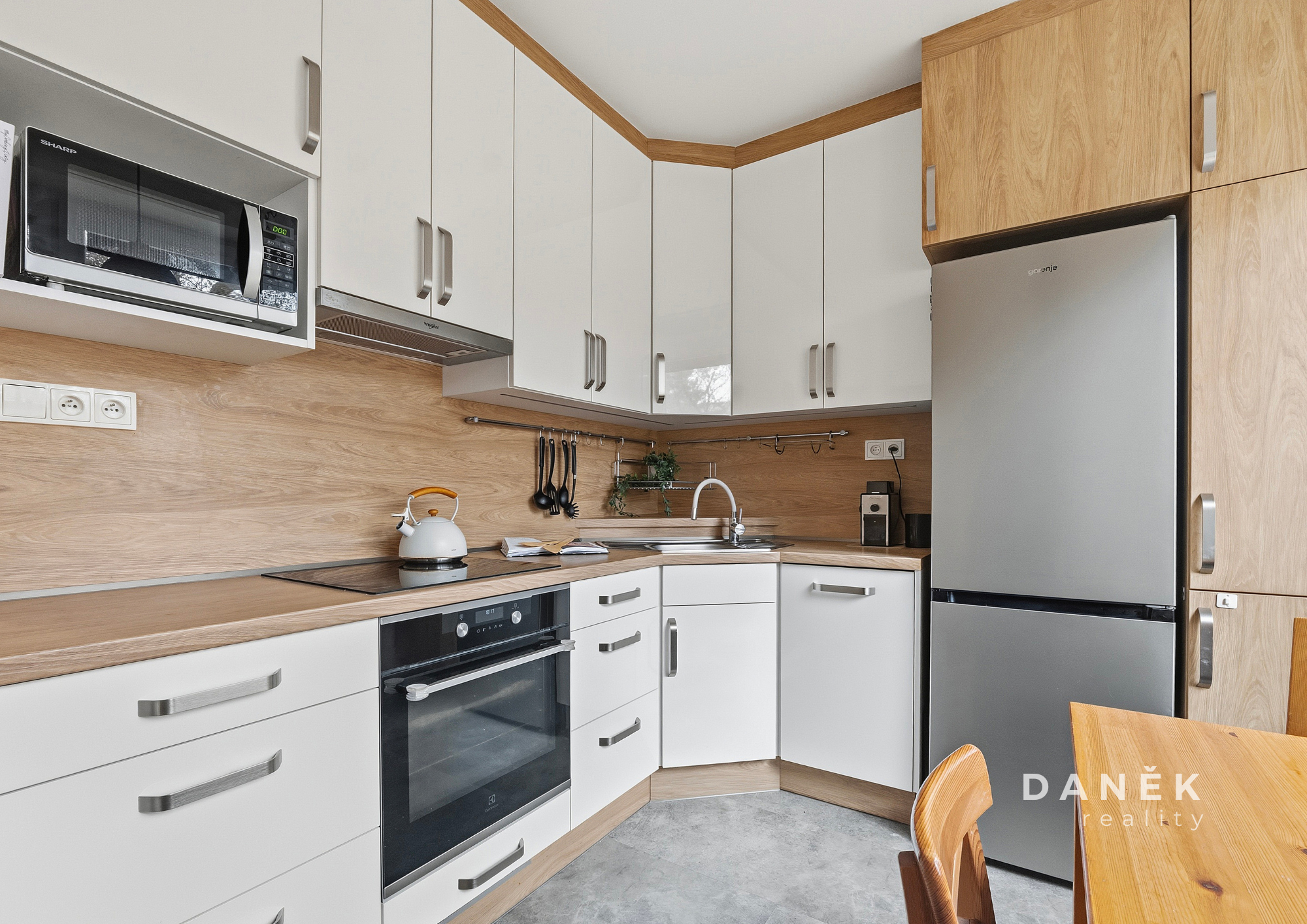 Velkou výhodou je rekonstrukce bytu z roku 2021 – zděné jádro, nová kuchyňská linka, koupelna, rozvody elektřiny, vody i odpady, omítky. Kuchyň je vybavená indukční varnou deskou, myčkou (45 cm) a digestoří. V bytě zůstává téměř veškeré vybavení (kromě lednice a mikrovlnky), takže se můžete prakticky rovnou nastěhovat.