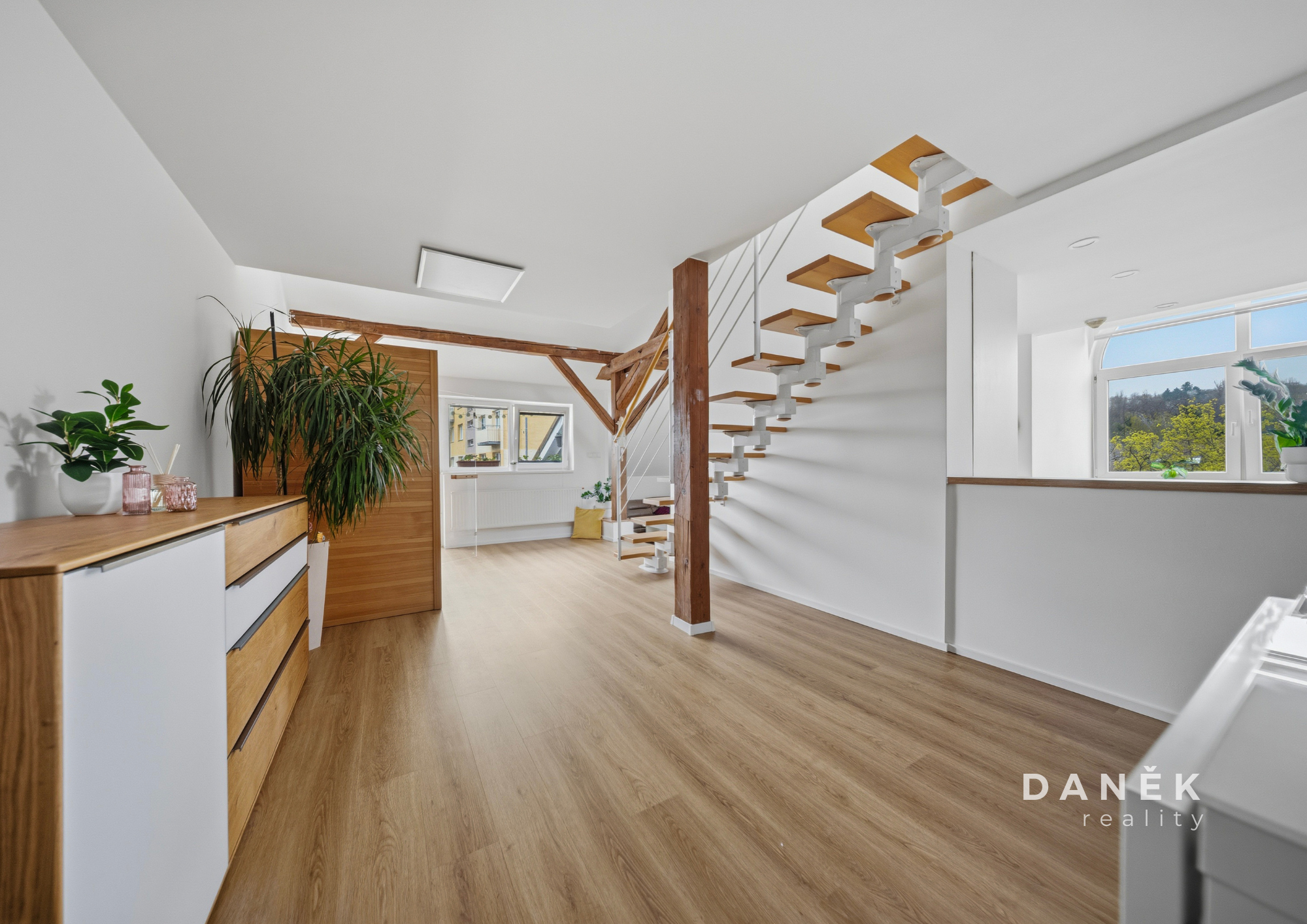 Přesně takový je tento mezonet 4+kk o celkové podlahové ploše 155 m² v oblíbené části Brno-Štýřice. Nabízí prostor, který běžně čekáte spíš od domu než od bytu. Dvě podlaží, skvělou atmosféru, spoustu světla, vlastní terasu a bonus, který se nevidí každý den – infra saunu.