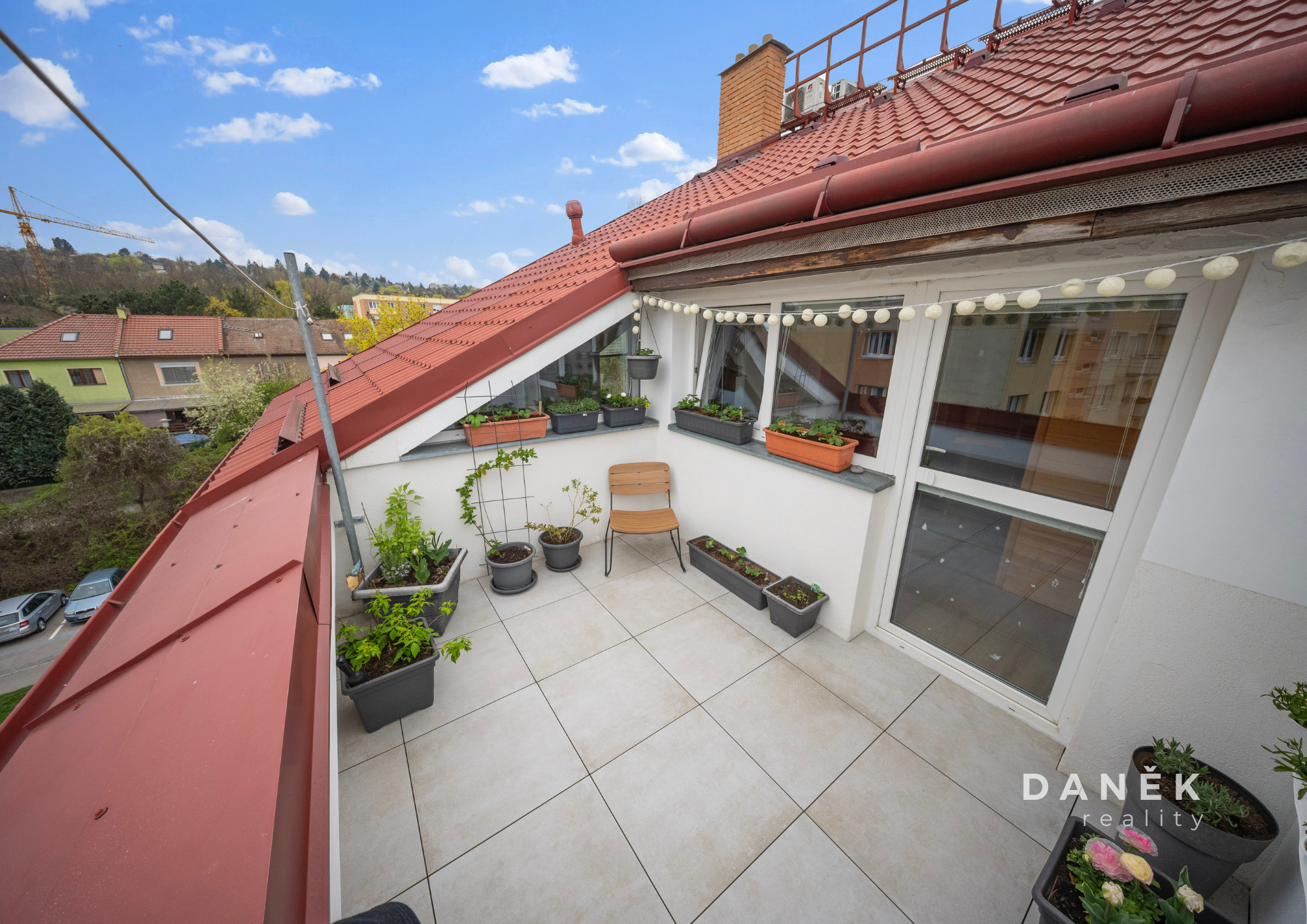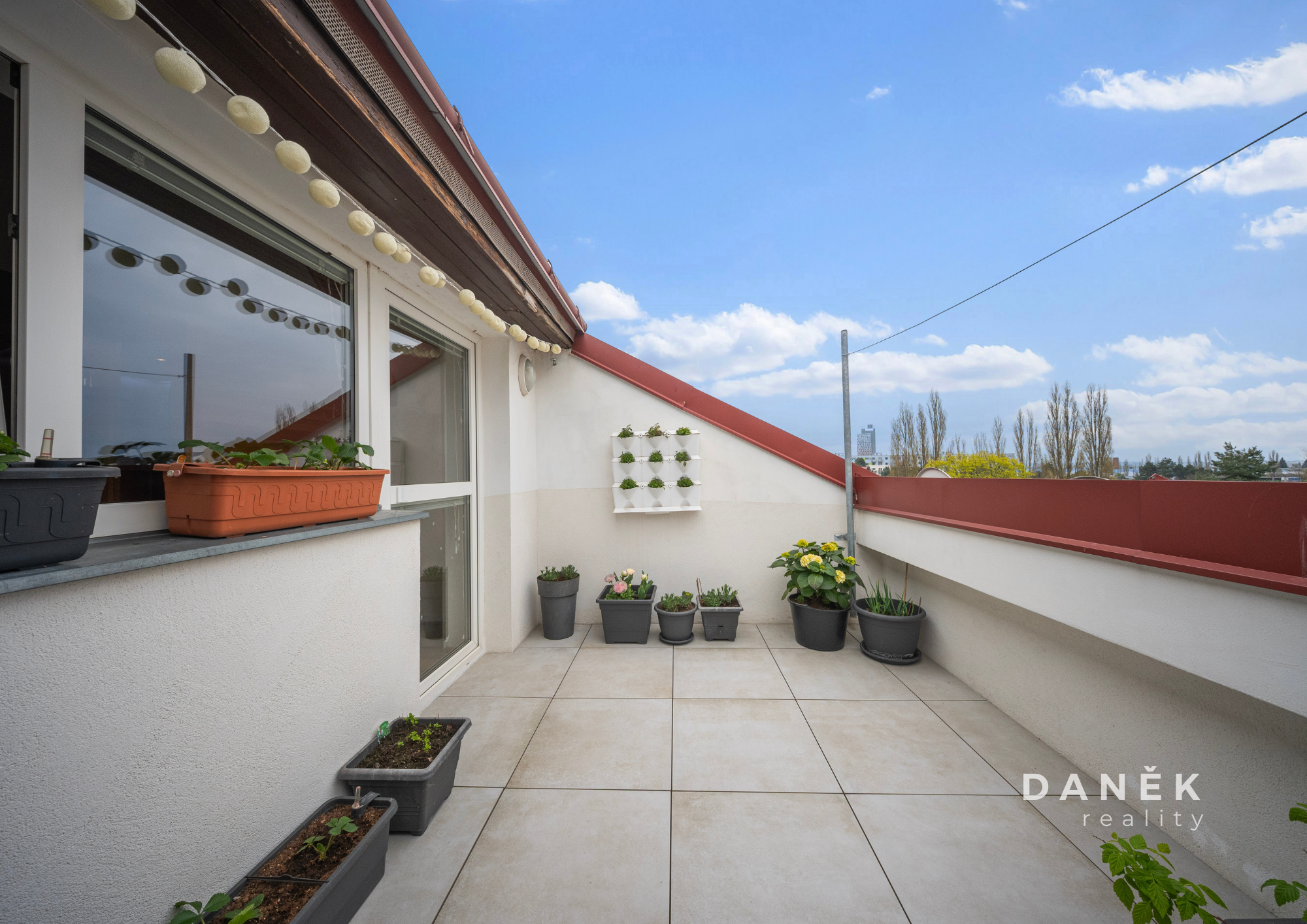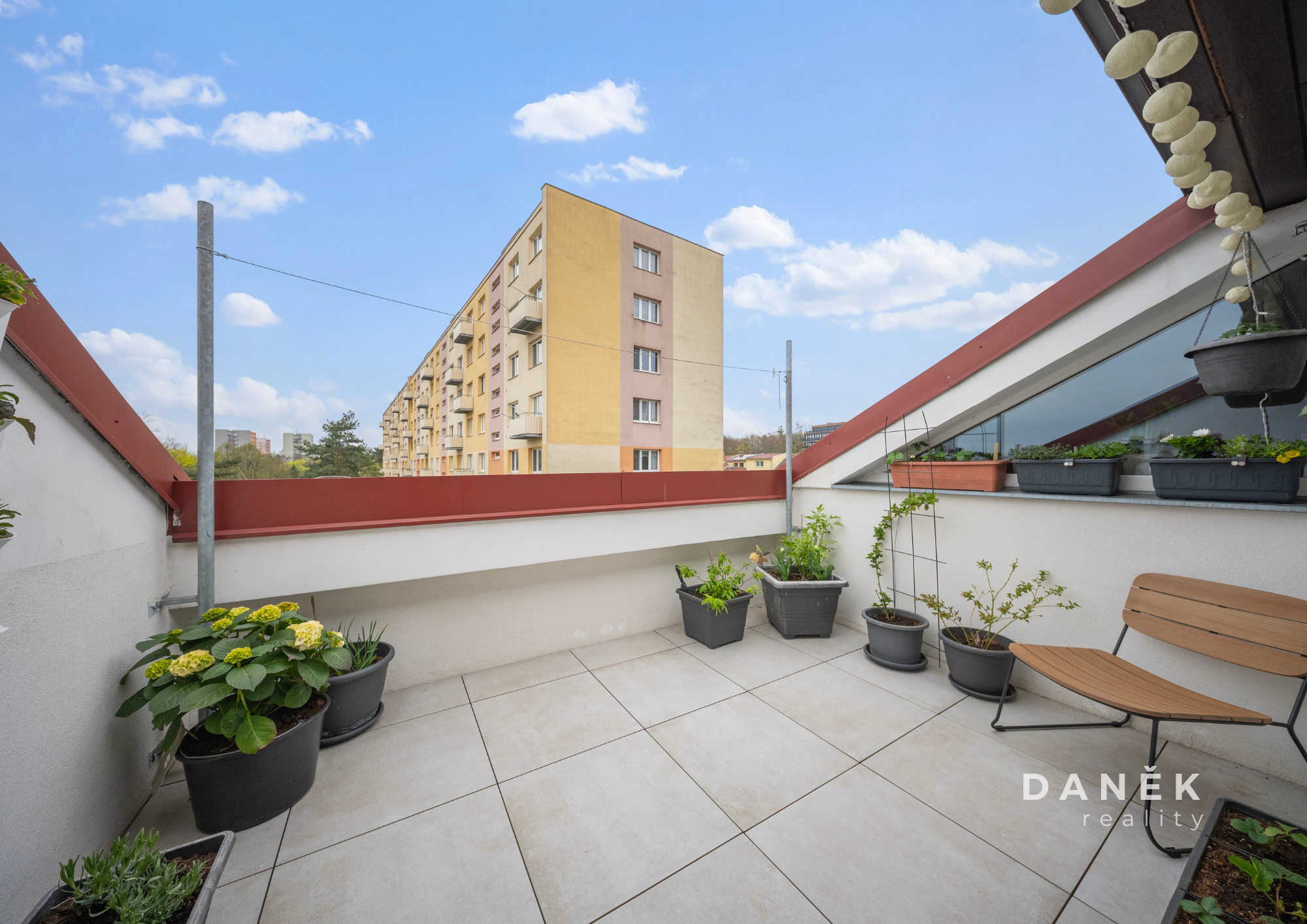 A pak je tu něco, co tenhle byt posouvá o level výš – terasa o velikosti cca 9 m². Místo pro ranní snídani, grilování s přáteli, pěstování bylinek, letní relax na lehátku nebo třeba malý bazének pro děti. Tohle je moment, kdy si řekneš: jo, tady chci žít.