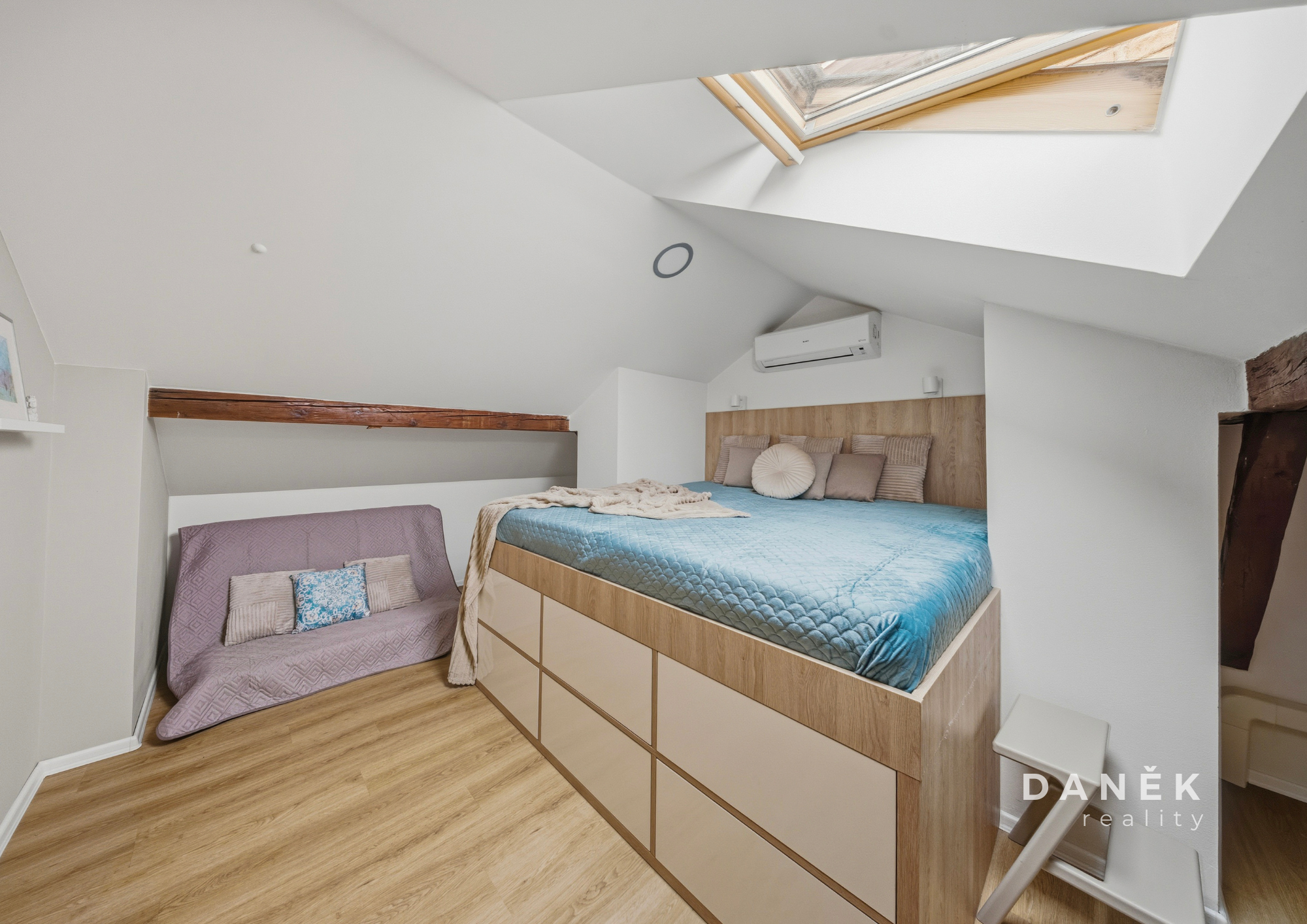 - druhou ložnici 17,5 m² (od cca 0,9 m výšky),