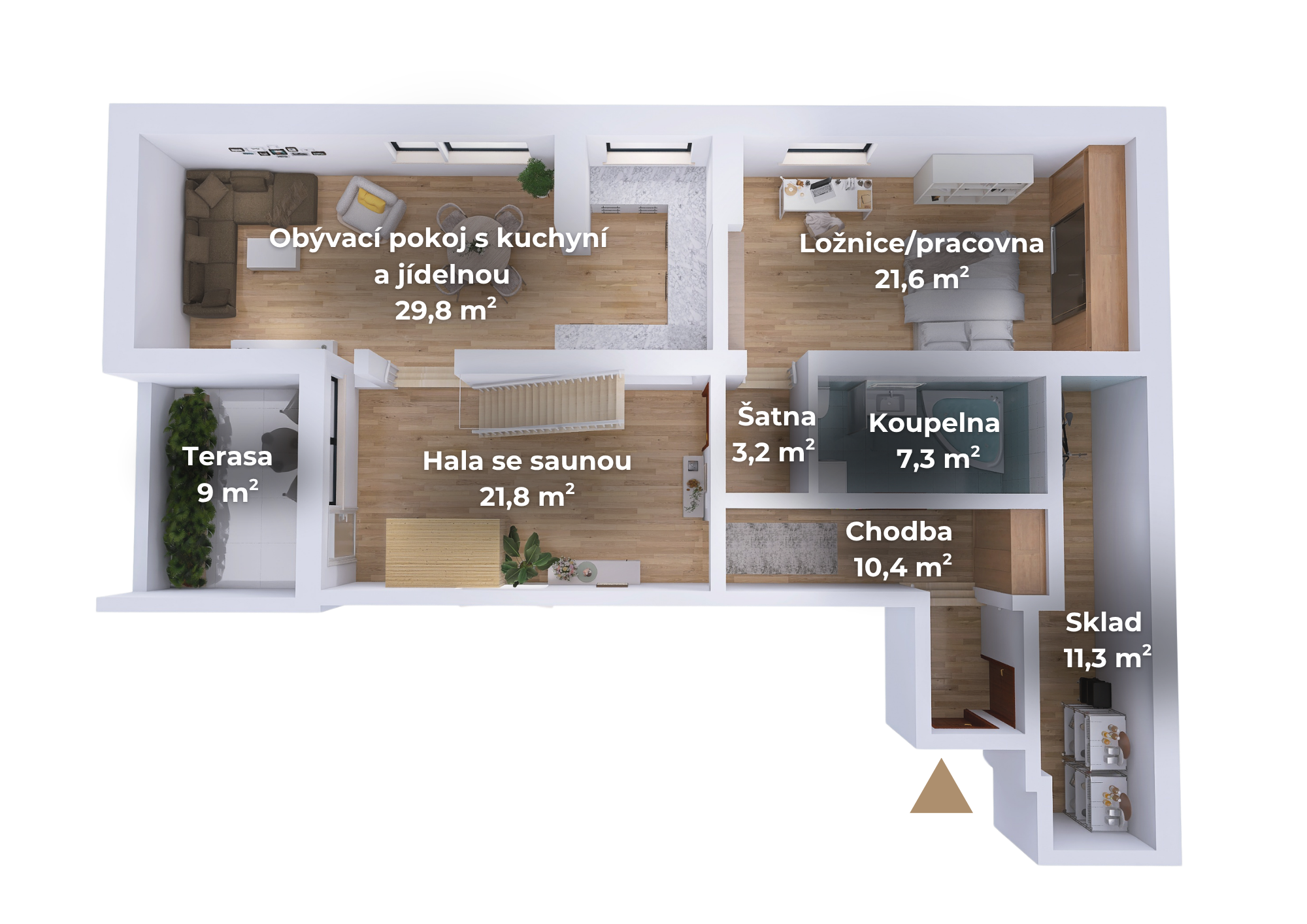 - halu s vlastní infra saunou 21,8 m²,