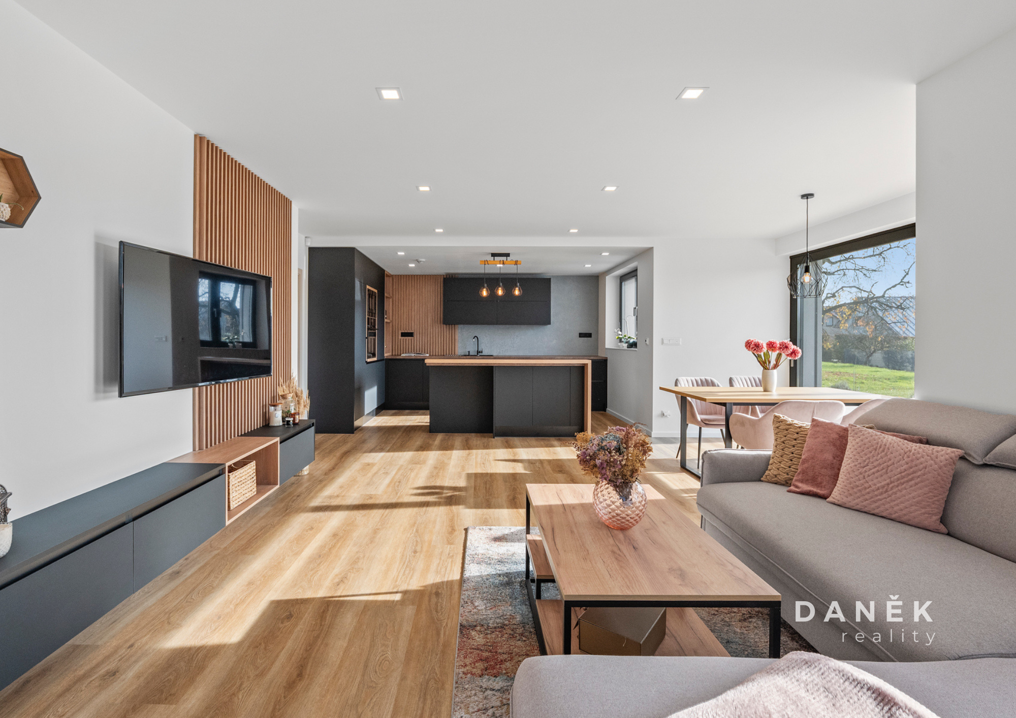 Hledáte moderní, úsporný a kvalitně vybavený domov, do kterého se můžete okamžitě nastěhovat bez dalších investic? Tento dům spojuje klid venkova a výbornou dostupnost – ideální místo pro život vaší rodiny.